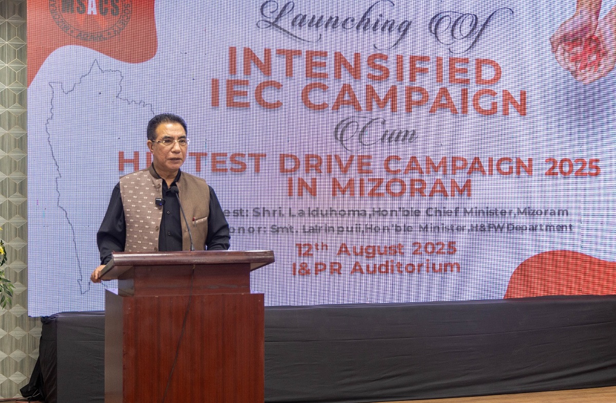 Vawiin khan I & PR Auditorium-ah Chief Minister Pu Lalduhoma chuan Intensified IEC Campaign on HIV thawh hnihna leh HIV Test Drive Campaign 2025 chu a hawng. Pi Lalrinpuii, Health Minister chu khualzahawm a ni a, Pu B. Lalchhanzova, Minister pawhin he hun hi a telpui. Thu a sawinaah Chief Minister chuan, HIV hi kai tawh chuan a tihdamna a awm lova. A laka himna awm chhun chu invên chauh hi a ni. Invêng thiam tûr chuan, a chungchâng kan hriat a ngai a, uar taka kan inzirtir a tul hle. Tin, he natna hi hmun tinah a awm tawh avangin thingtlâng leh hmun kilkhâwr zâwk thleng phâk ngeia hma lâk a ngai. Mizoram hi HIV/AIDS invên dan awareness nei tha pâwl tak ni a târlan kan ni a. Mahse, HIV kai kan tam viau lawi si. Awareness nei tha, zawm tha si lo state angin kan lang mek. Hmalakna awmze nei, zawm hlawh lehzual awareness kan ngaihtuahchhuah a tul.
