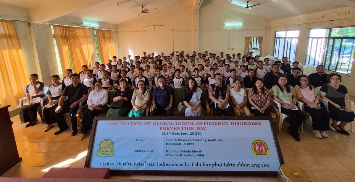Vawiin khan Health Workers’ Training School, Kulikawn-ah “Global Iodine Deficiency Disorders Prevention Day” hman a ni a, Dr. Lily Chhakchhuak, Mission Director, National Health Mission chuan khuallian niin a hmanpui a, Health Worker Training lai Student thahnem tak an tel.Khuallian Dr. Lily Chhakchhuak, Mission Director, NHM chuan he day in a tum ber chu India ram pumpui-ah Iodine tlakchham avanga harsatna tam tak awm theite dona beihpui thlakna a nih thu a sawi a. Mizoram-ah Iodine tlakchham avanga Awrpuar tunhma lama a tam thin thu sawiin, a tam zualna khua-ah phei chuan Patling 10 thukhawm zingah Awrpuar 11 vel an awm an tih fiamthu thin thu te leh India Sawrkarin NIDDCP programme a rawn siam hnua Iodine tel lohna chi (salt) zawrh a khap atanga thawktu ten theihtawp an chhuahna a zarah Awrpuar an tlem tak thu te a sawiin lawmawm a tih thu a sawi a.