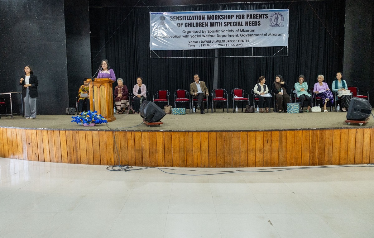 Vawiin khan Social Welfare Department leh Spastic Society of Mizoram (SSM) tangkawp chuan Dawrpui Multipurpose Centre ah, fate zinga rilru leh pianphunga harsatna nei nu leh pate tana inzirtirna hun ‘Sensitization Workshop for Parents of Children with Special Needs’ an buatsaih a. Pi Lalzarmawii, Commissioner & Secretary, Social Welfare Women & Child Development Department chuan he hun hi khuallian niin a hawng.He hunah hian khuallian Pi lalzarmawii, Commissioner&Secretary, SW, W&CD Department chuan thusawiin, Sensitisation programme huaihawt chu pawimawh hle a a hriat thu a sawi a. Fate zinga rilru leh pianphunga harsatna nei nu leh pate dinhmun chu eng emaw chang chuan harsa tak a nih tur thu sawiin, beidawng mai lo leh kawng awm ang angte dap zel thei tura inhrilhhriatna neih chu tihmakmawh a nih thu a tar lang a.